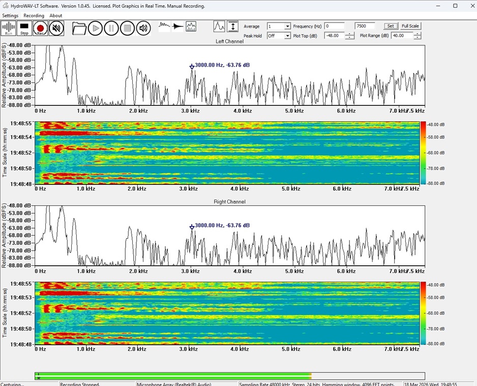 HydroWAV Software, Stereo Spectrum and Spectogram